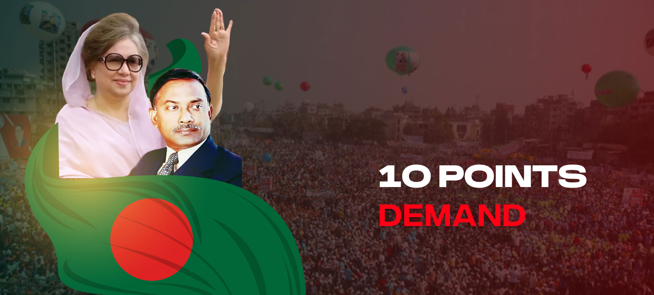 Bangladesh Nationalist Party - BNP has announced 10 - points demand, including the release of the BNP chairperson, the resignation of the ruling government and the dissolution of the current National Parliament.